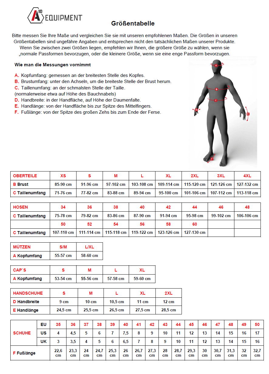 GRÖSSEN: XS bis 3XL »»» Zur Größentabelle von A10 «««