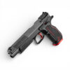 Der voll verstellbare Single-Action-Abzug lässt sich in Züngellänge, Vorzug, Gewicht und Stop individuell anpassen, für einen butterweichen Lauf von nur wenigen Millimetern. Die höhen- und seitenverstellbare Kimme mit langem Visierstrich maximiert die Treffsicherheit auf weite Distanzen. Ergänzt durch eine ambidextre Sicherung und 17-Schuss-Magazine ist sie für langes, intensives Training optimiert.